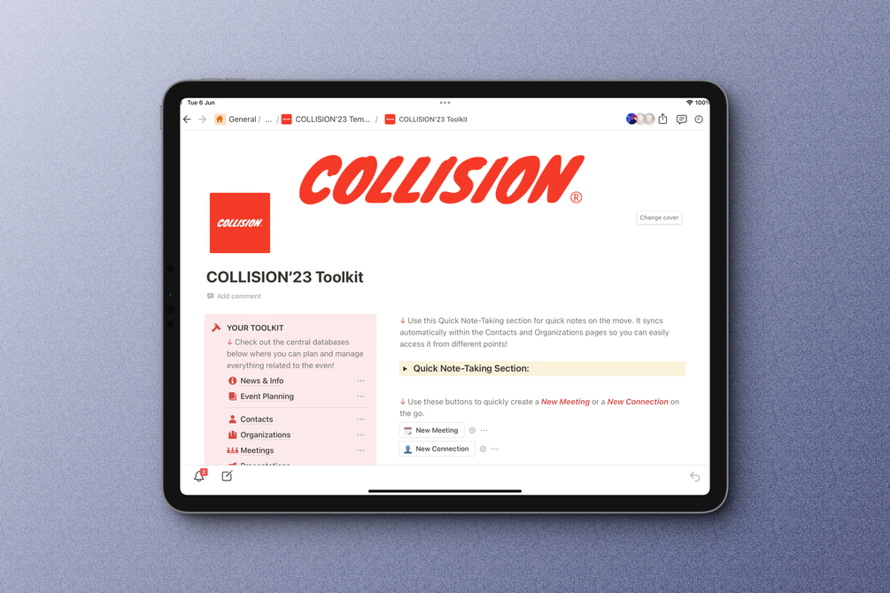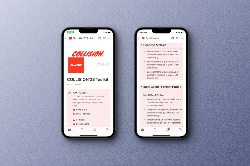 Introducing the ultimate Notion template designed for COLLISION'23 – your secret weapon to maximize your event experience!